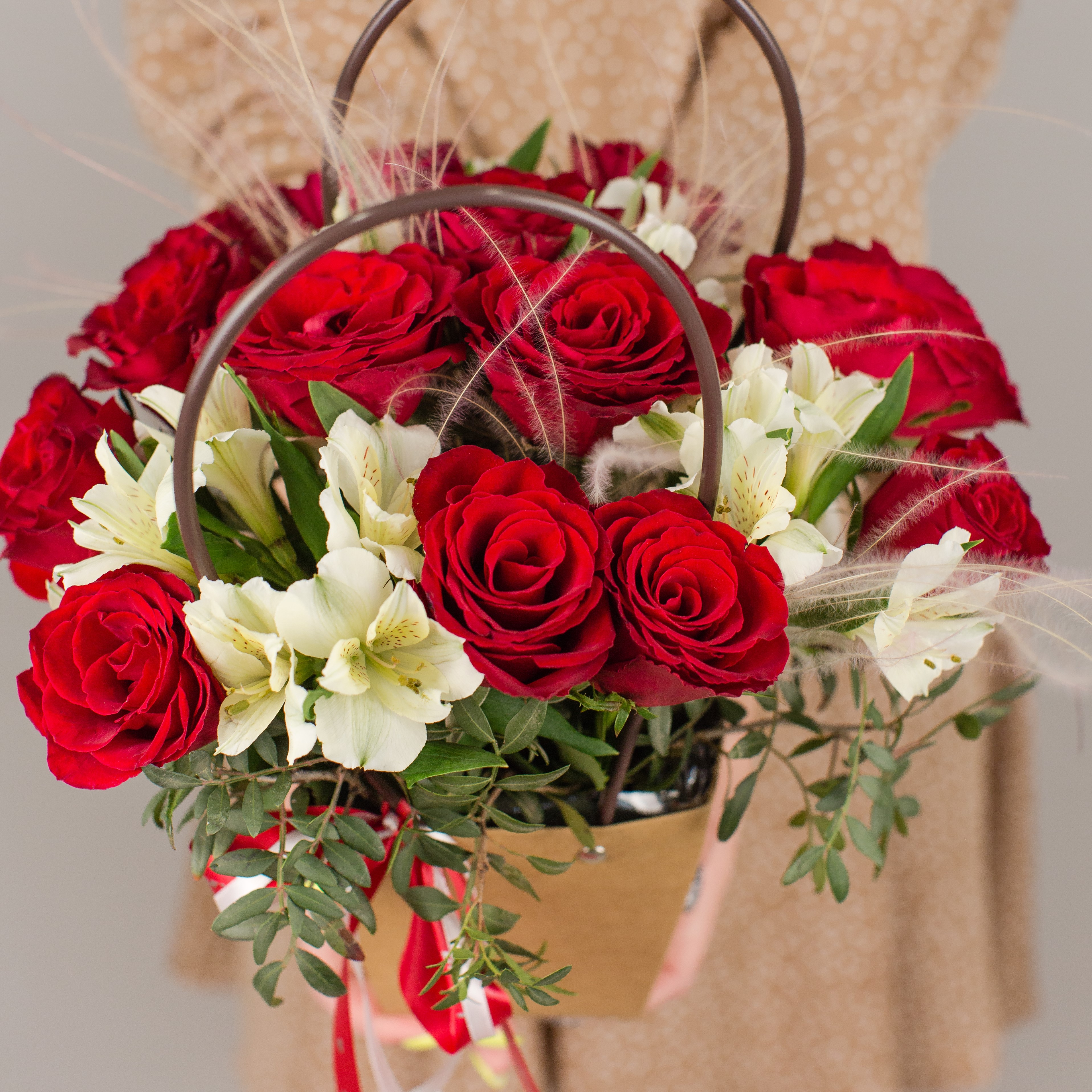 Корзинка "Сказочное лукошко" с розами и ирисами арт. 7053