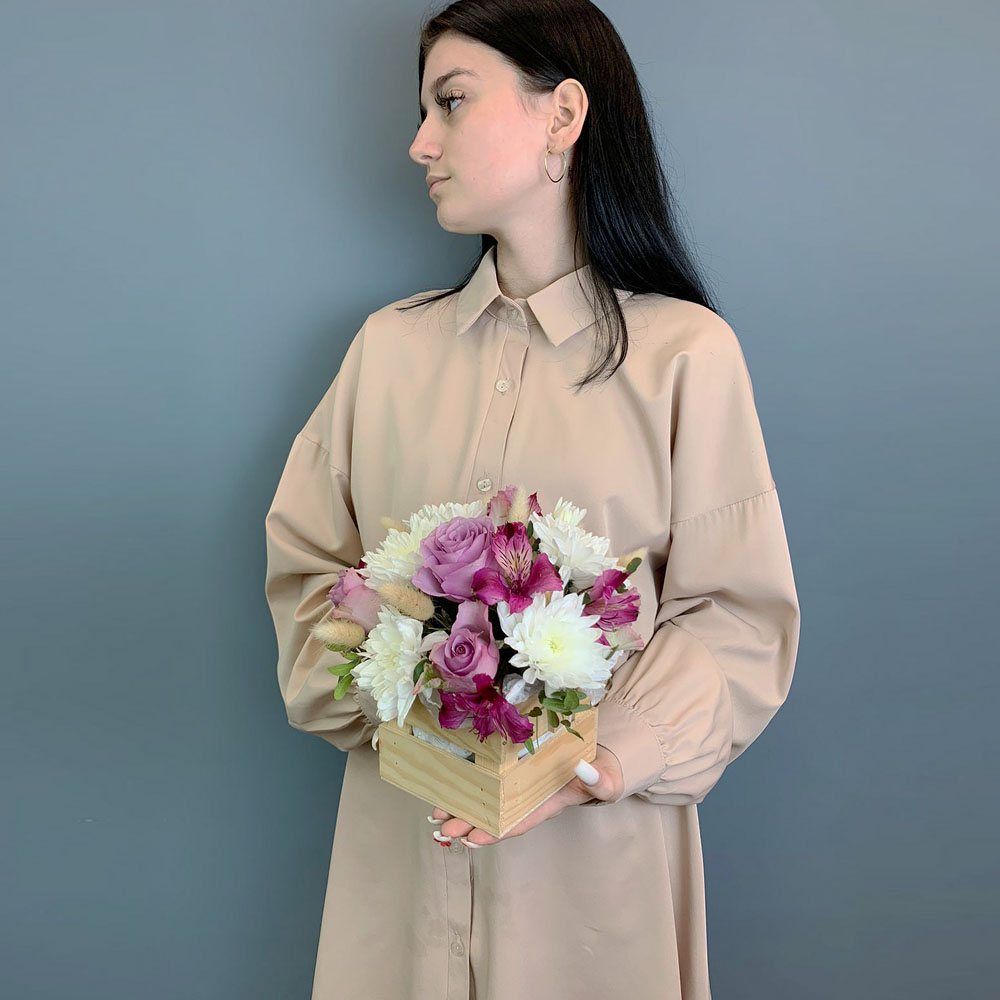 Чтобы букет радовал дольше, достаточно слегка увлажнять губку, сохраняя цветы свежими. Хризантемы и альстромерии славятся стойкостью, поэтому композиция будет сохранять красоту несколько дней. Закажите цветы в ящике с быстрой доставкой и порадуйте тех, кто для вас дорог.