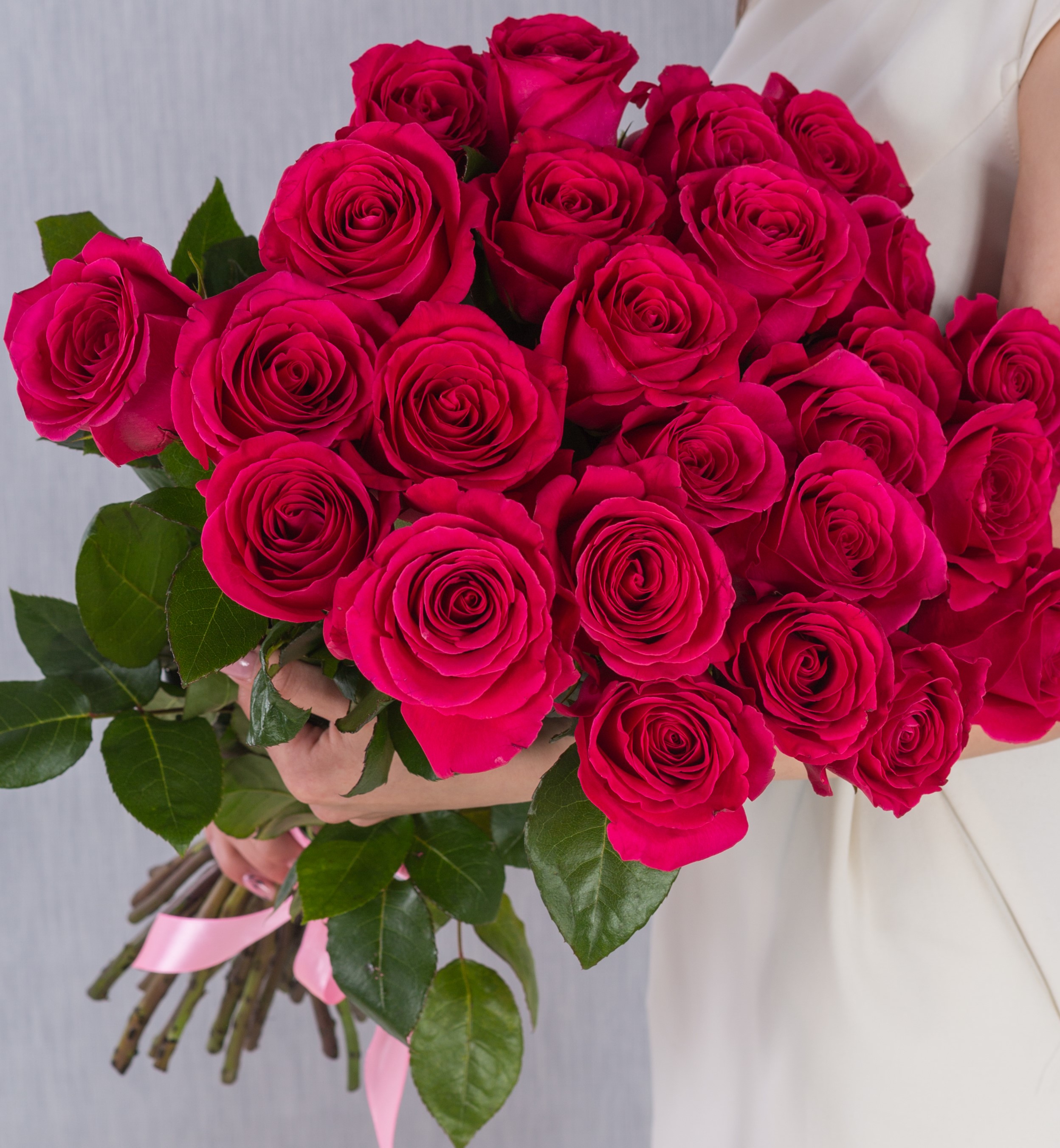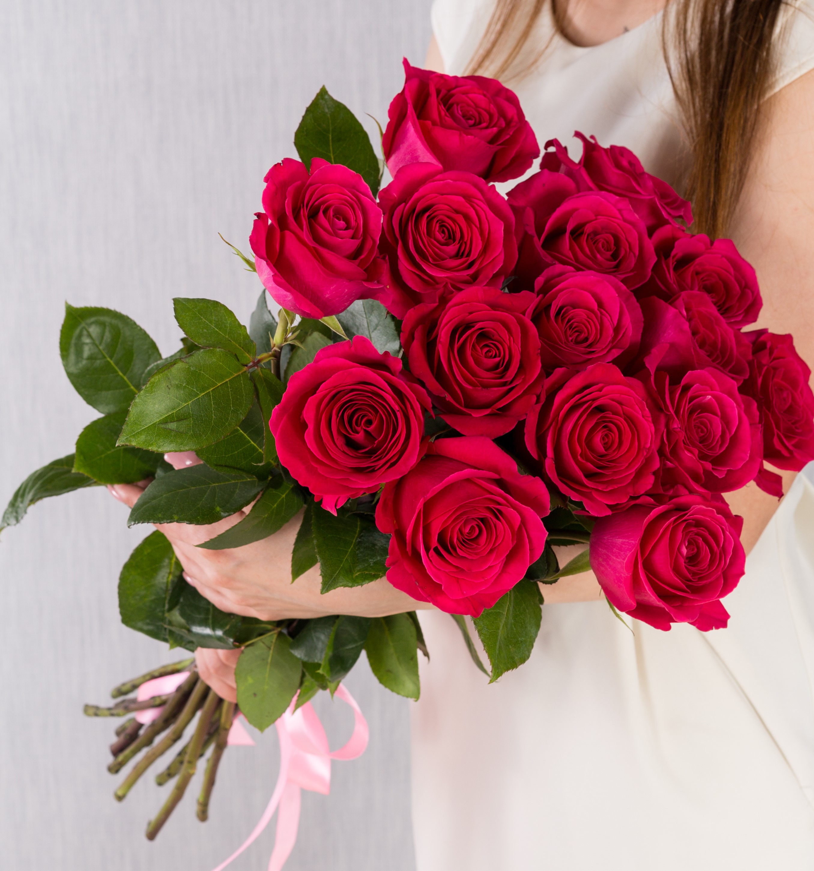 Букет розовых роз из 15 шт с крупным бутоном 60 см №36397