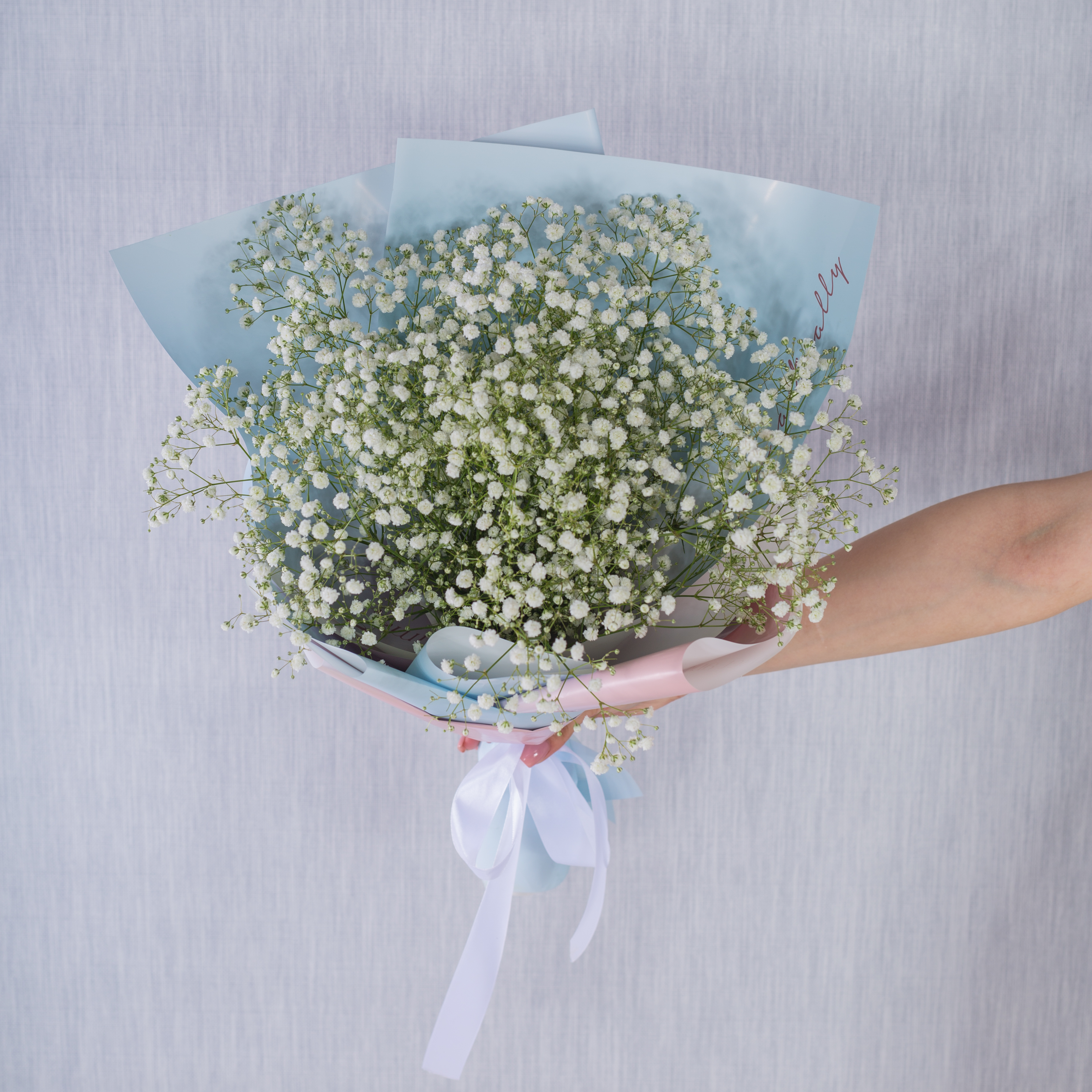Букет "Крошка моя" из розы Эквадор, гермини, гиперикума и диантуса с эвкалиптом арт. 22582